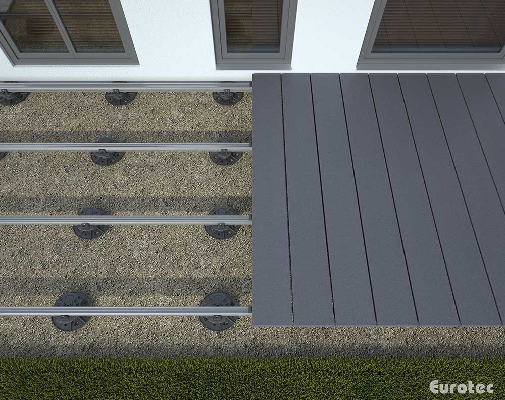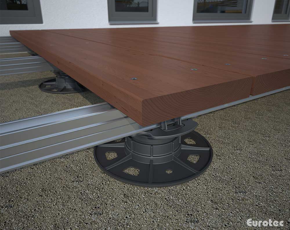 The adjustable pedestal BASE is standardly supplied with a BASE L adapter and one screw for each adjustable pedestal. If BASE adjustable pedestals are used for aluminum, appropriate adapters need to be purchased as well.