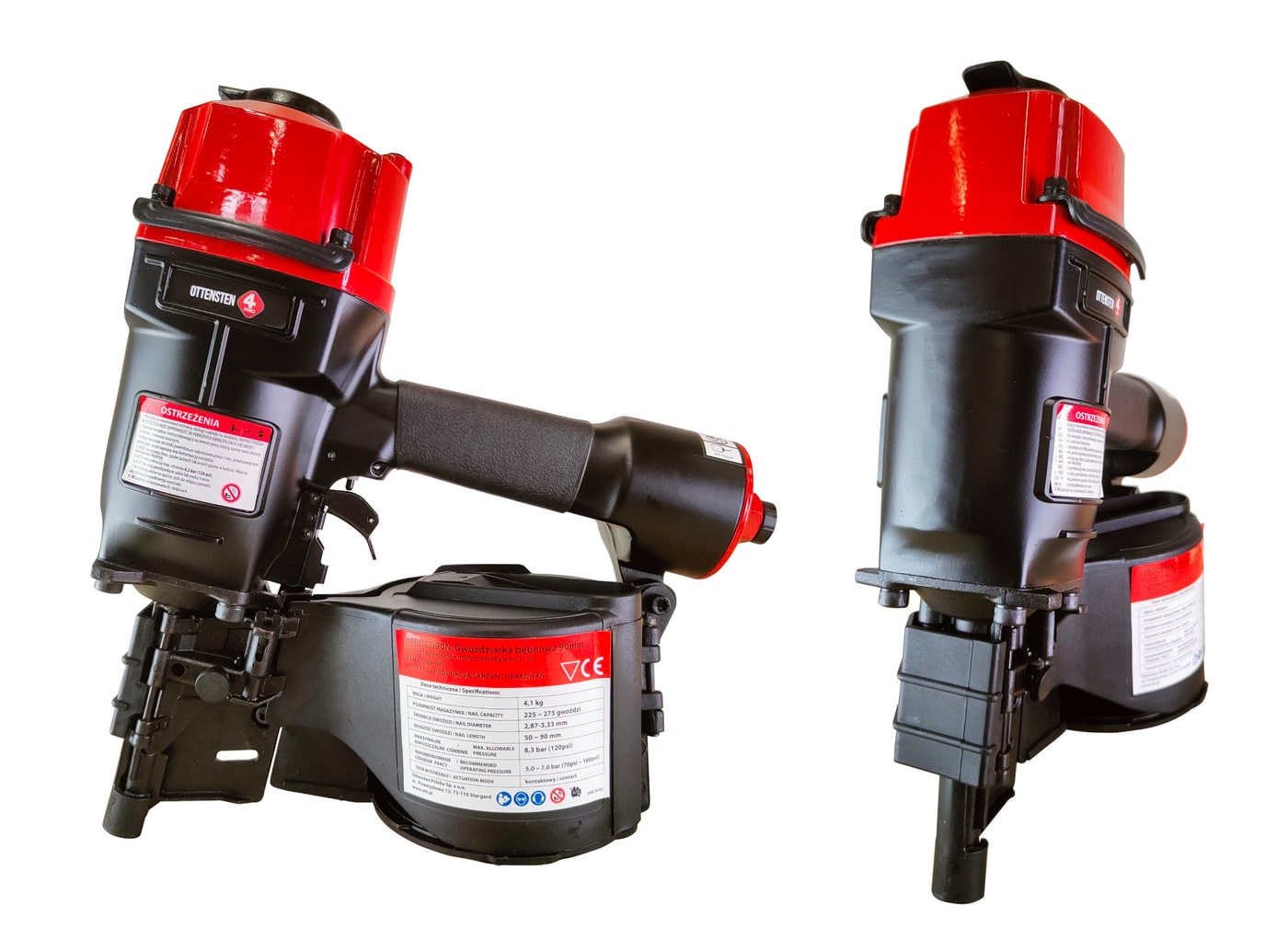 See on täiesti professionaalne tööriist, mida iseloomustab väga vastupidav ja võimas. Pneumaatiline trummelnaelutuspüstol CN90 kasutab traadiga ühendatud naelu: lamedaid, lainelisi ja keermestatud naelu. Testitud ettevõtetes, mis toodavad puidust kaubaaluseid, puidust pakendeid ja puidust aiatooteid. Kiirlaskevõime (kuni 3 lasku sekundis) ja väikese massiga tööriist võimaldab suurepärast manööverdusvõimet ja paindlikkust tööl, kaitstes samal ajal luu- ja lihaskonda ülekoormuse eest, mis on paljude vigastuste ja luu- ja lihaskonna häirete põhjuseks. Naelapüstol reageerib vabastusmehhanismile kiiresti ja täpselt, standardse suure mahutavusega ja kergesti laetava salvega kummist käepide pakub tööks mugavust.