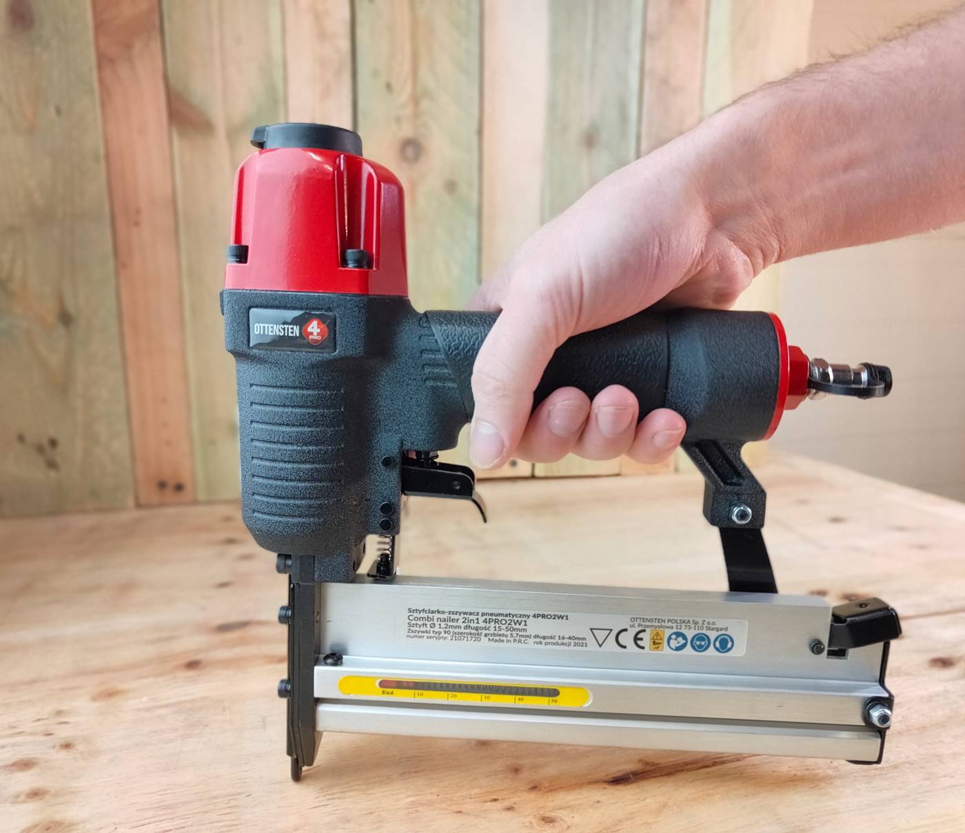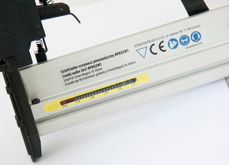 4PRO2w1 pneumaatiline klammerdaja on mõeldud 16–40 mm pikkuste 90. tüüpi klambrite ja 1,2 mm läbimõõduga ning 15–50 mm pikkuste naelte löömiseks.